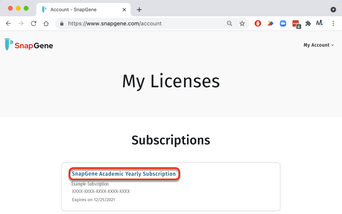 转到 snapgene.com,然后单击右上角的“My Account”链接。