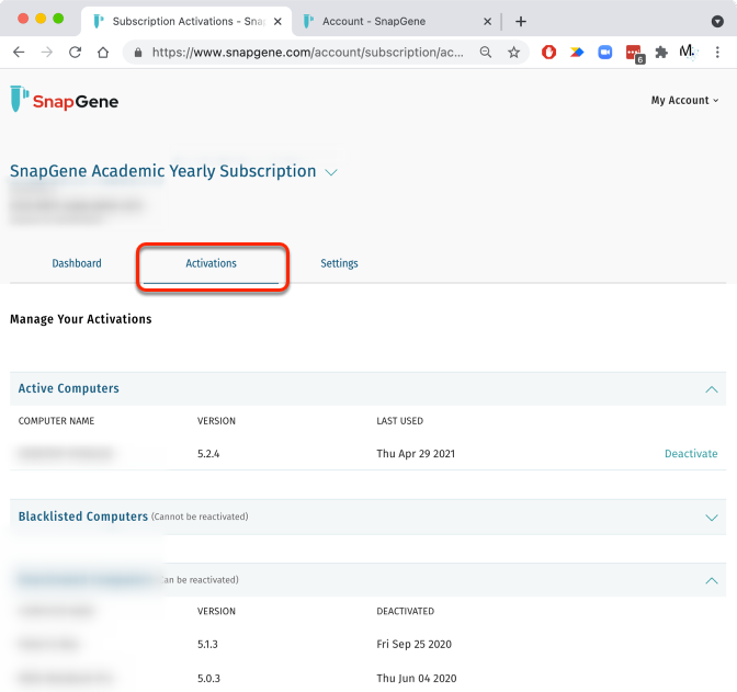 管理 SnapGene 帐户:激活