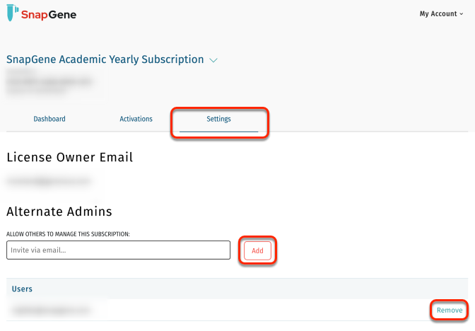 您必须是 SnapGene 许可证的账户管理员